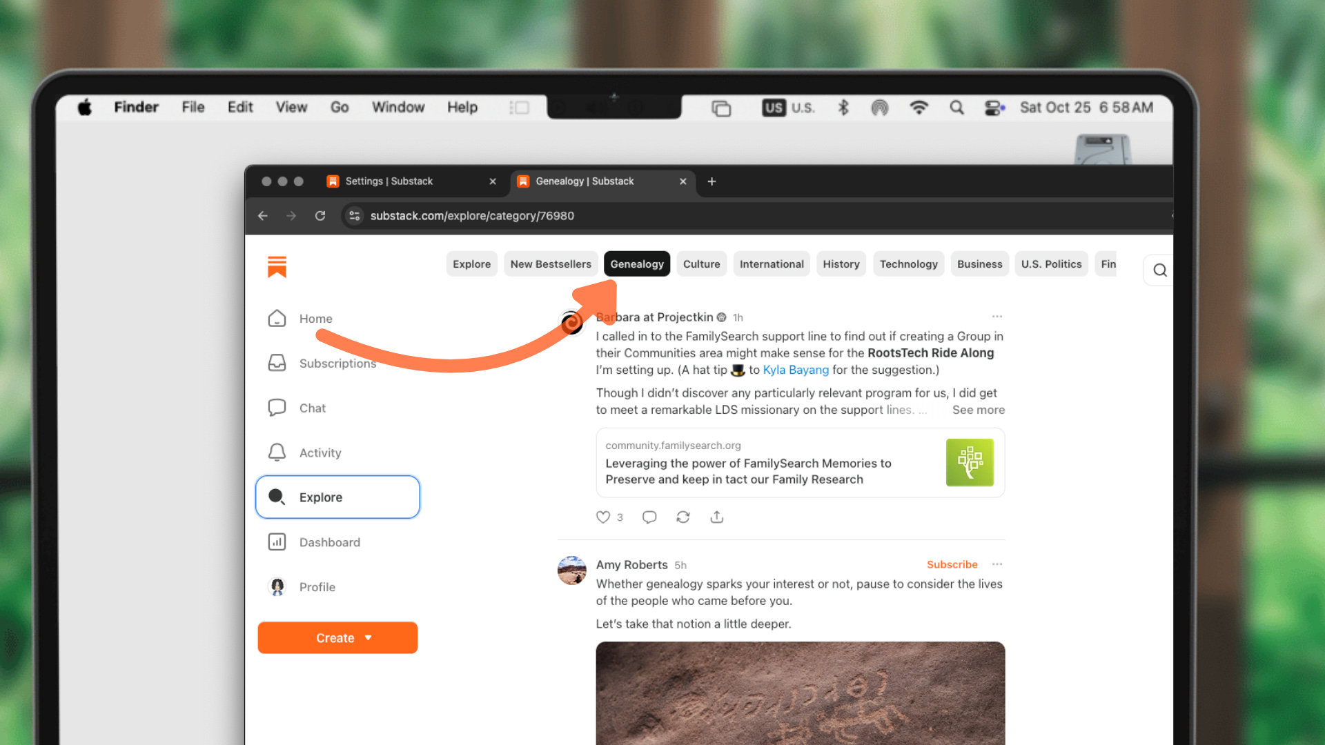 Carrie Loranger asked me about how to get to the Genealogy category here on Substack. Who knew there was one, right?