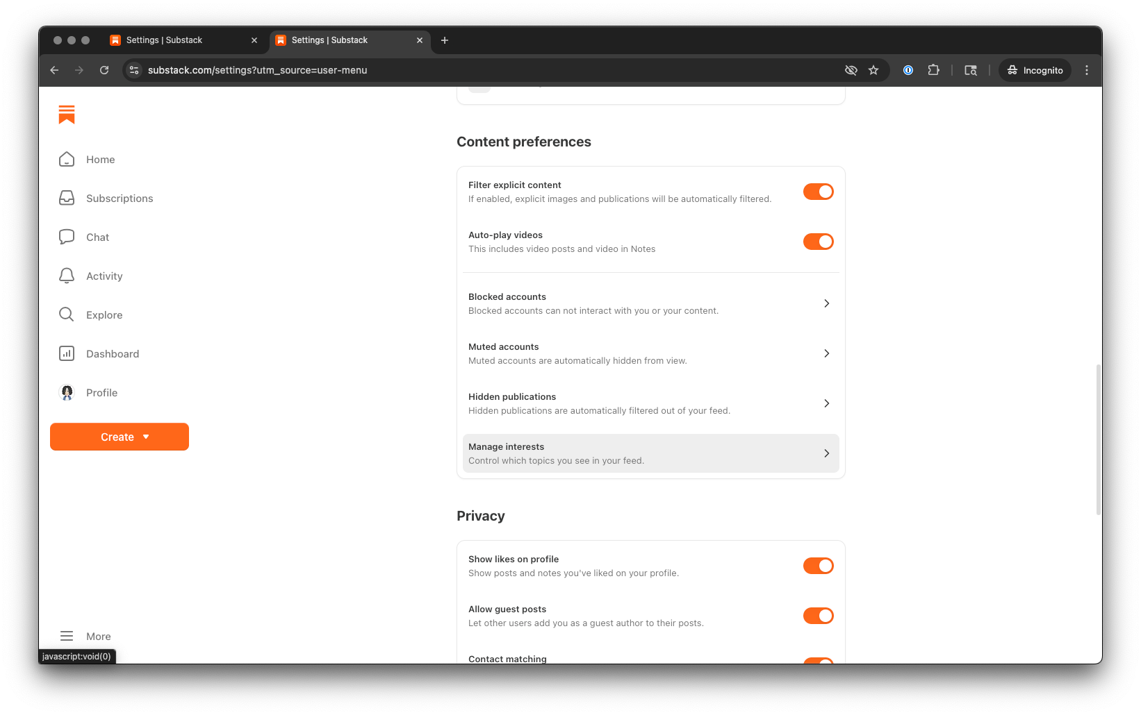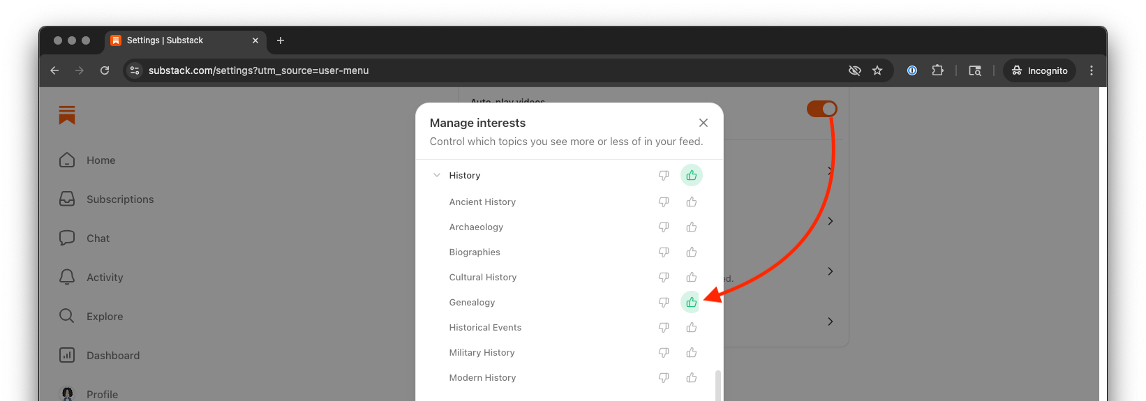 To set this up, you have to specify your interests to Substack. You either do this on your initial onboarding, or follow these instructions from the browser: