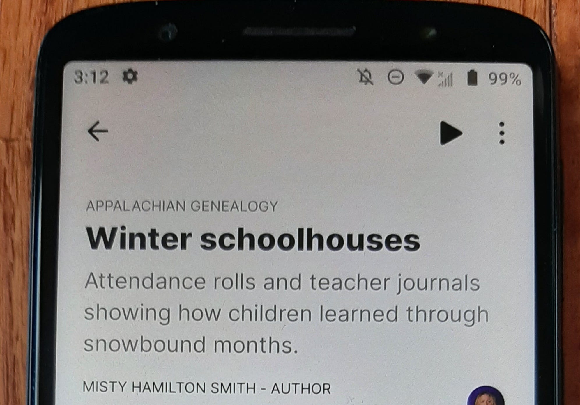 Text-to-speech is available in the app, and AI will read the post. The app is available for iOS and Android. Sadly, the feature is not available when I access Substack via the internet. But text-to-speech is now available for all posts through the app. There was no triangular play button for Four Bullets at Baler Bay, but Winter Schoolhouses by Misty Hamilton Smith - Author played just fine, and the voice was beautiful.